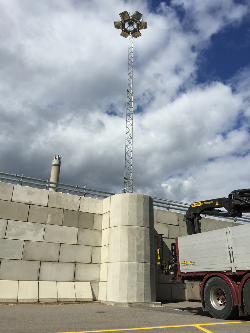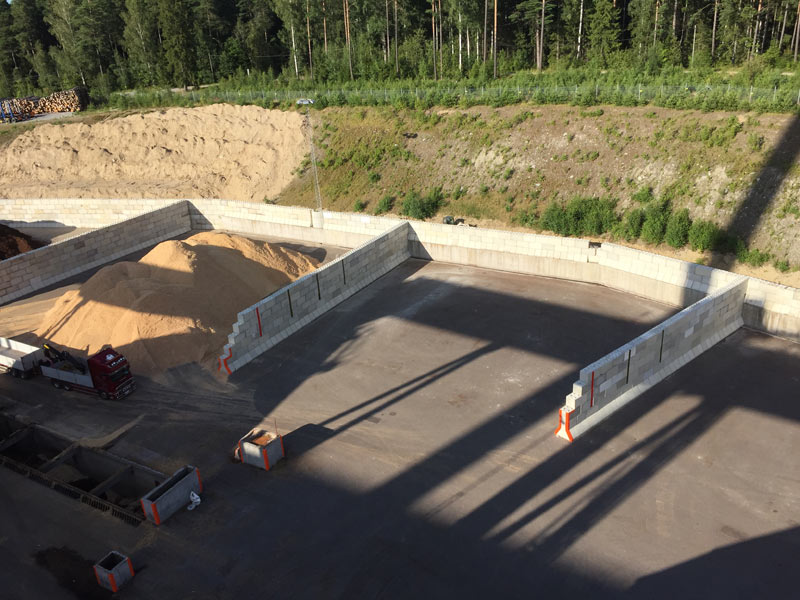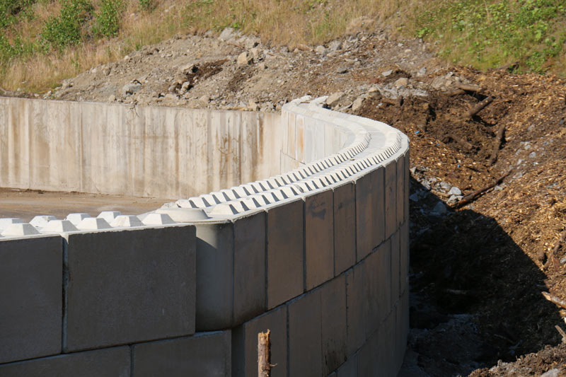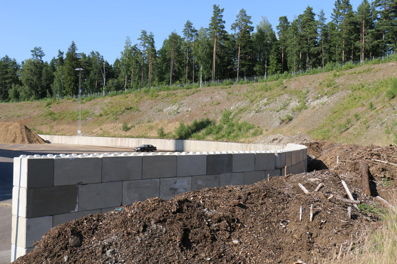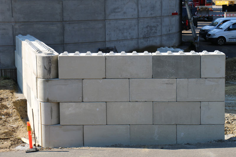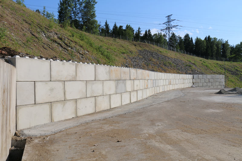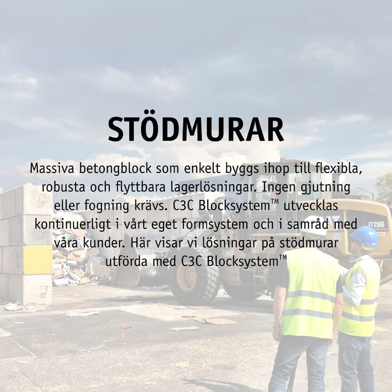 Massiva betongblock som enkelt byggs ihop till flexibla, robusta och flyttbara lagerlösningar. Ingen gjutning eller fogning krävs. C3C BlocksystemTM utvecklas kontinuerligt i vårt eget formsystem och i samråd med våra kunder. Här visar vi lösningar på stödmurar utförda med C3C BlocksystemTM.